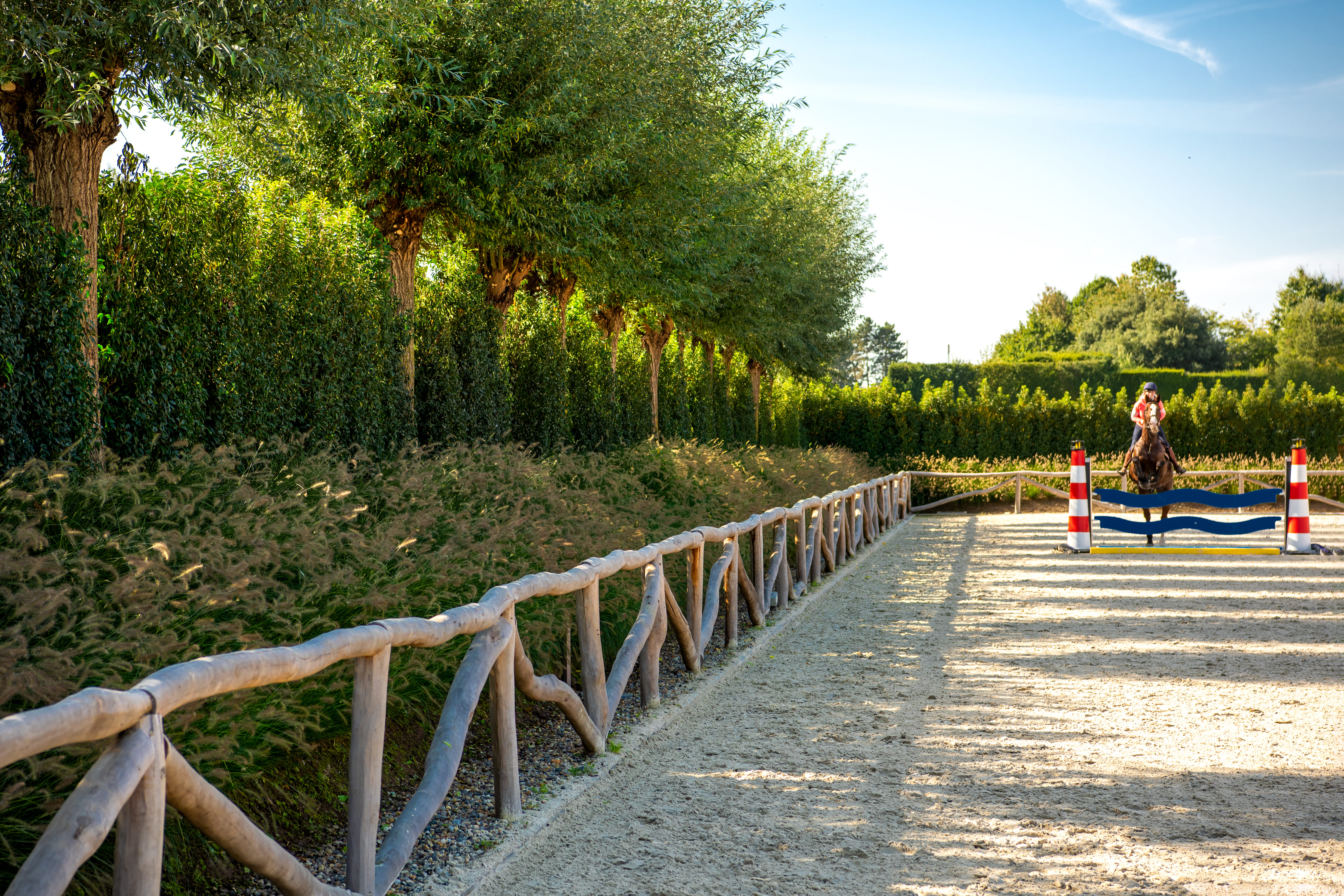 Référence européenne des clôtures et portails en bois, De Sutter Naturally habille les propriétés, les aires de travail et de repos ou encore les carrières événementielles. Les clôtures De Sutter Naturally se retrouvent par ailleurs dans certaines des allées et prairies du Domaine de Dampierre-en-Yvelines, un château du XVIIe siècle qui s’épanouit au sein de 400 hectares de parc forestier et jardins. “Nous avons choisi il y a cinq ans la clôture Post & Rail Modern pour son esthétisme, sa qualité de bois et son excellent vieillissement”, souligne Adélaïde Mulliez, responsable du pôle équestre événementiel du Domaine. “Les clôtures posées par De Sutter Naturally sont impeccables, s’intègrent parfaitement dans le paysage et offrent, de surcroît, une solide réponse à nos chevaux et mules américaines (issues d’un croisement entre un baudet du Poitou et une Percheronne, ndlr), et ce sans doublage de fil électrique. Nous en sommes ravis !”.